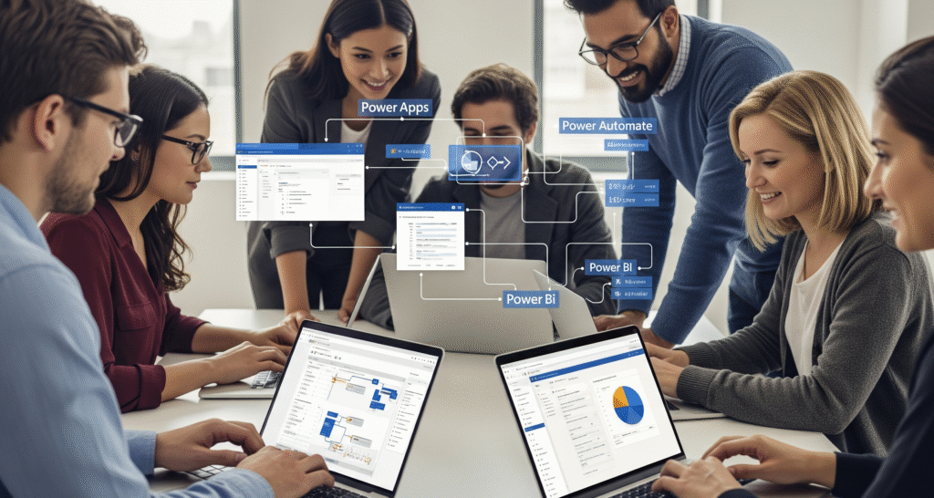 - Power Apps: A ferramenta para criar aplicativos personalizados de baixo código (low-code) para necessidades de negócio.